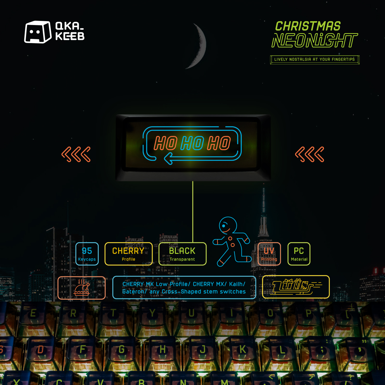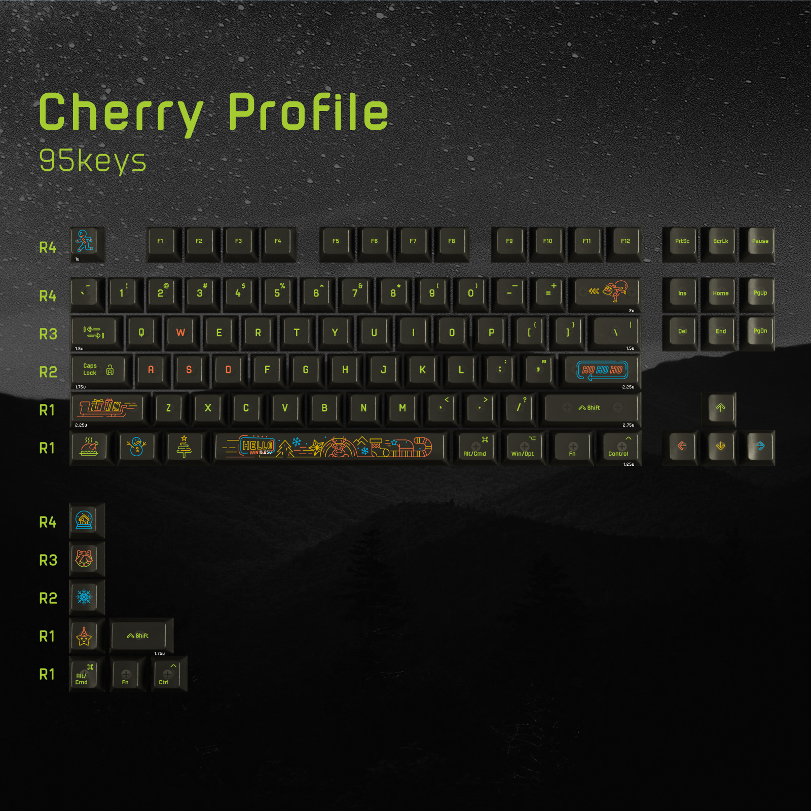 - BASE KIT: 95 keycaps (including 3 mac modifiers keys)